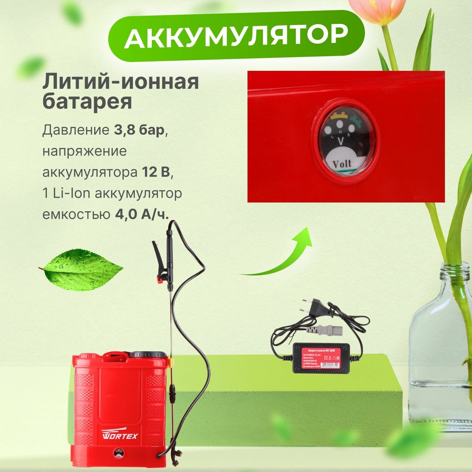 Аккум. опрыскиватель WORTEX KS 1240 Li 12В, 1 акк., 4 Ач, 12 л (12 л., 3.8 бар, 12 В, 1 акк., 4.0 А/ч Li-Ion) (KS1240Li0029) информация: