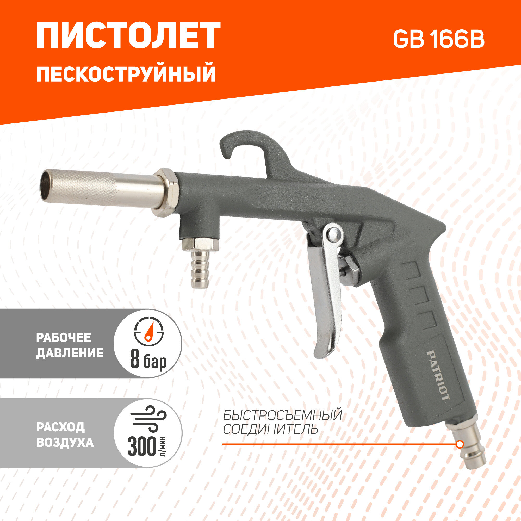 Пистолет пневматический пескоструйный Patriot GH 166B, 8 бар, 300 л/мин