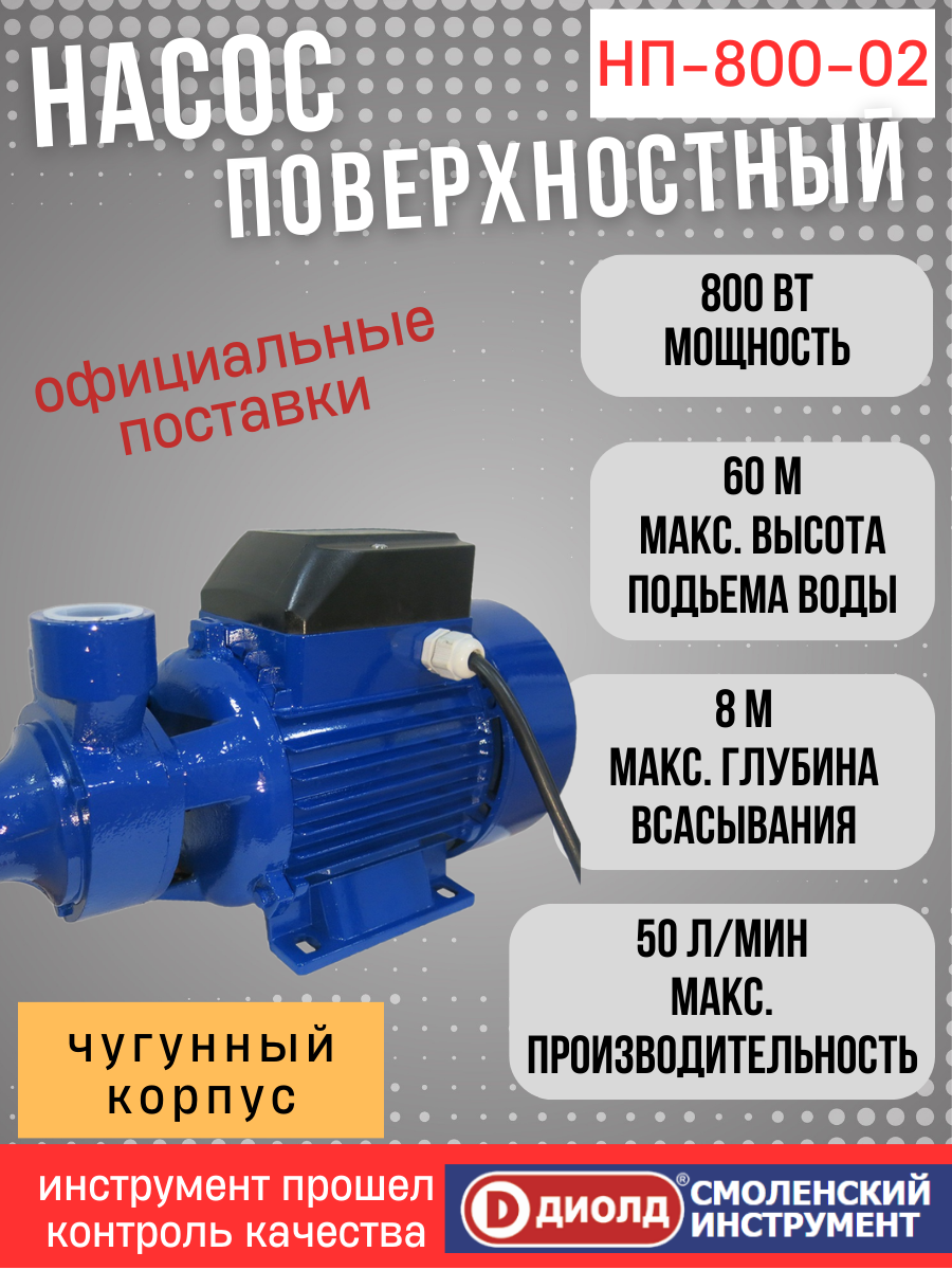 10 цен на Насос поверхностный Диолд НП-800- 02,800 Вт,высота подъема 45 м, производитель Россия