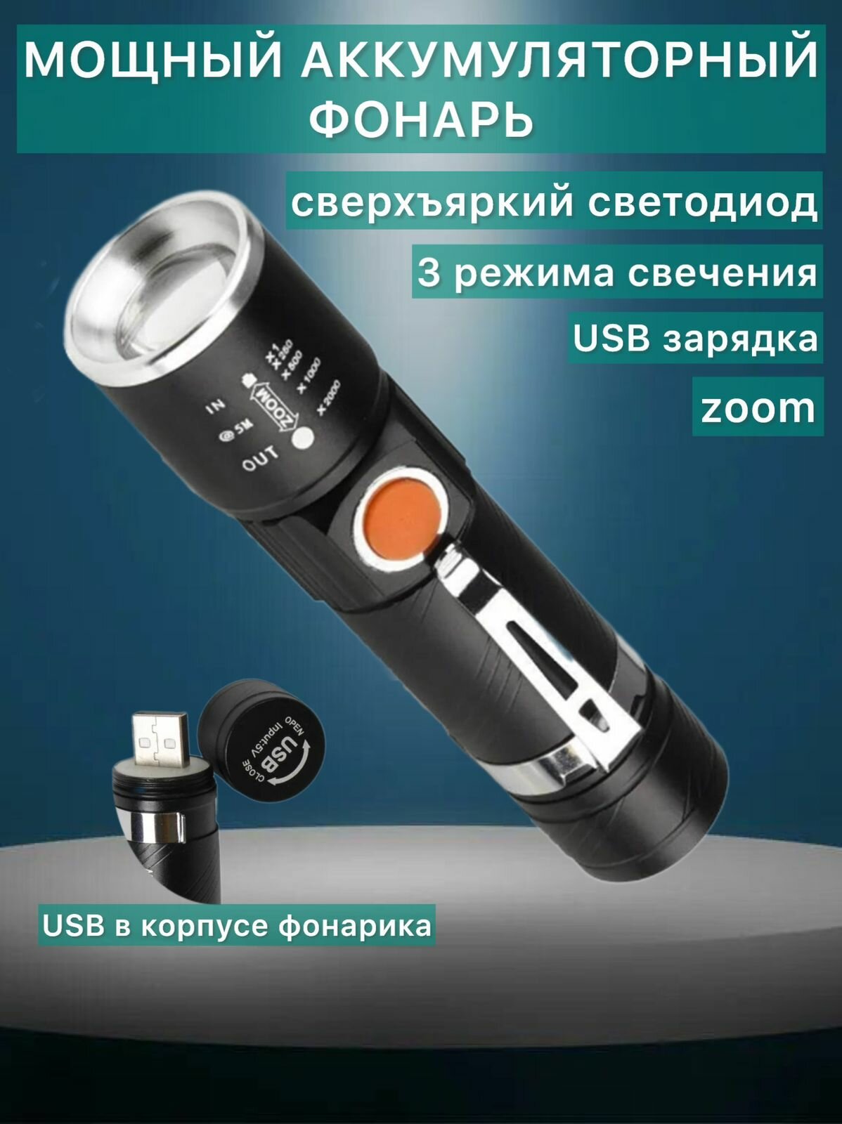 Мощный светодиодный фонарь на аккумуляторе, из металла, с фокусировкой луча, Annsna AS-108