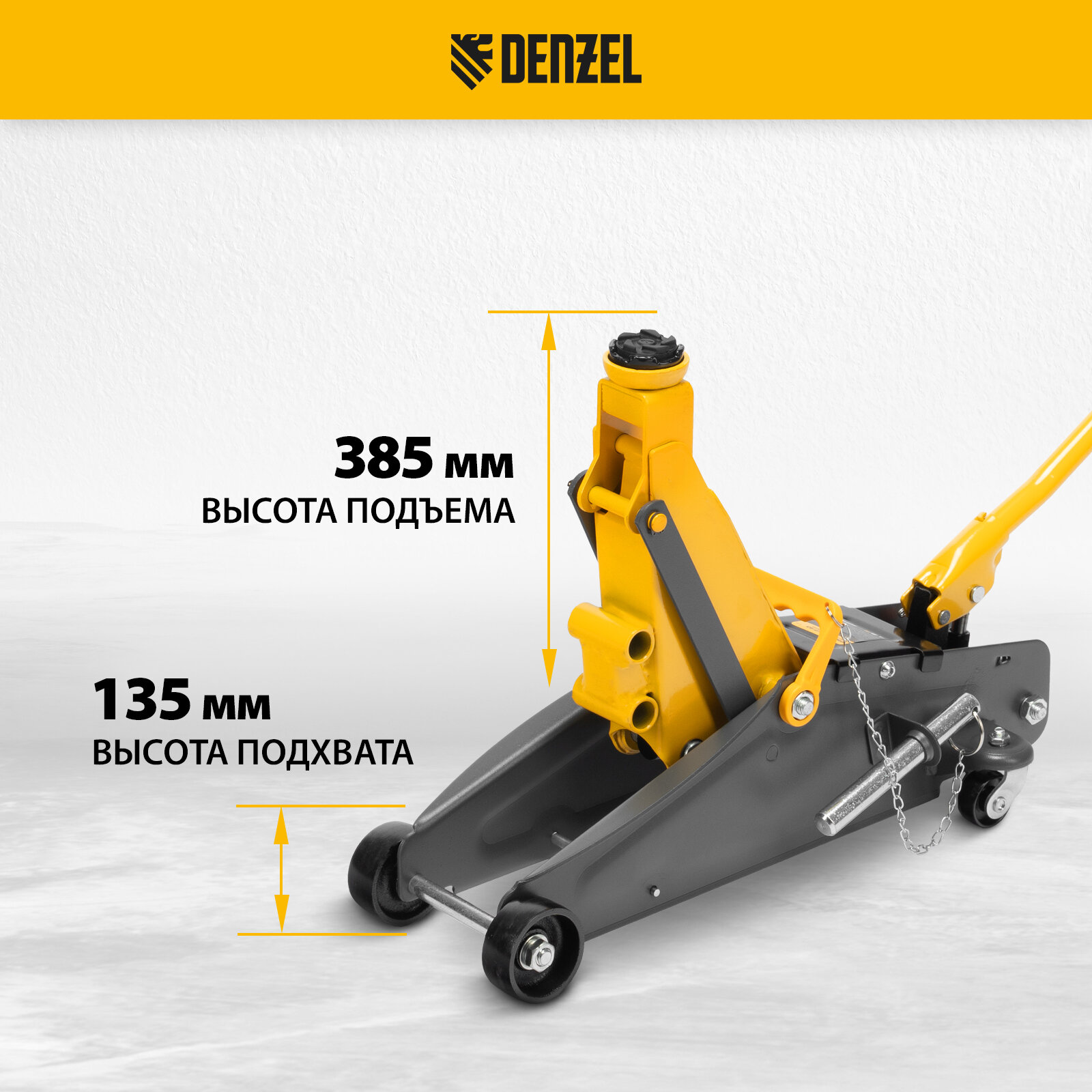 10 цен на Домкрат гидравлический подкатной с фиксатором Denzel 2, 8 т, 135-385 мм, в кейсе 51156