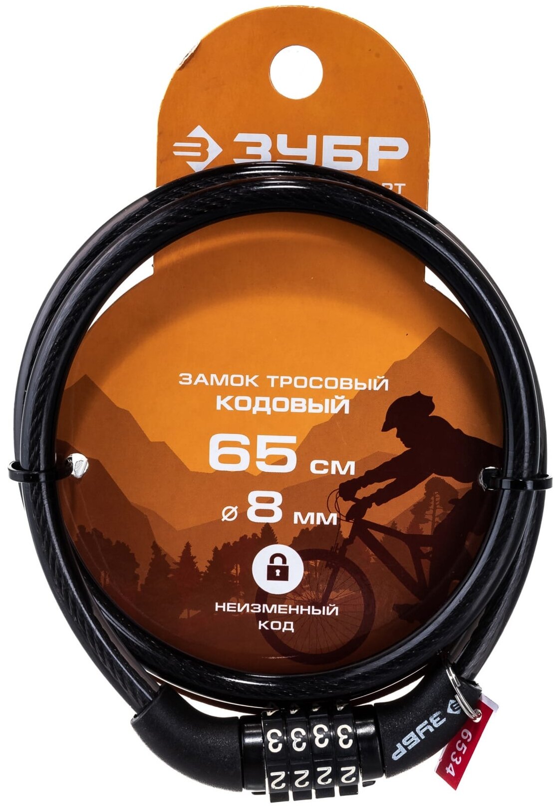 ЗУБР 650 мм, d 8 мм, кодовый, с неизменяемым кодом, тросовый замок (37267-65)