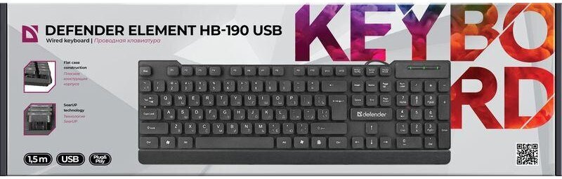 Клавиатура USB DEFENDER ELEMENT HB-190 RU BLACK 45191