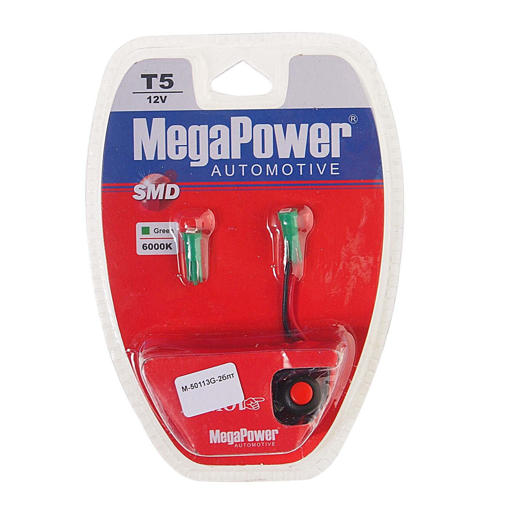Отзывы на Автолампа T5 (W2х4.6d) 1 SMD 3528 GREEN блистер с тестером (2шт) 8лм 12V MEGAPOWER