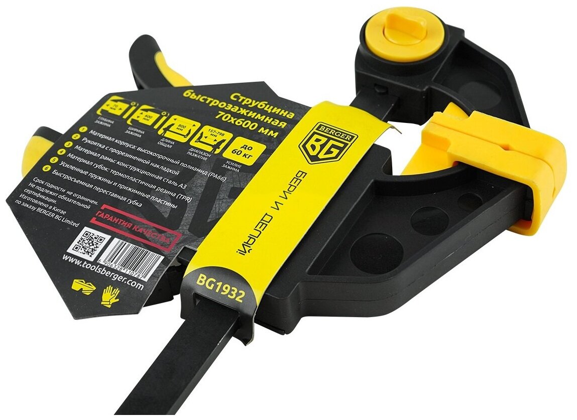 Струбцина быстрозажимная BERGER BG1932, зажим до 60 кг, 70 * 600 мм информация: