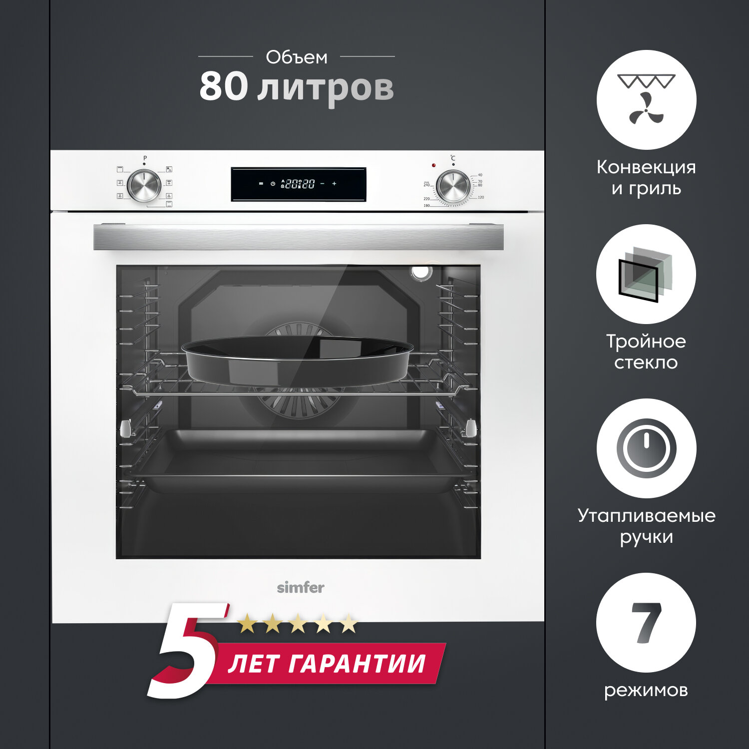 Духовой шкаф Simfer B6EC68122, стекло белое информация: