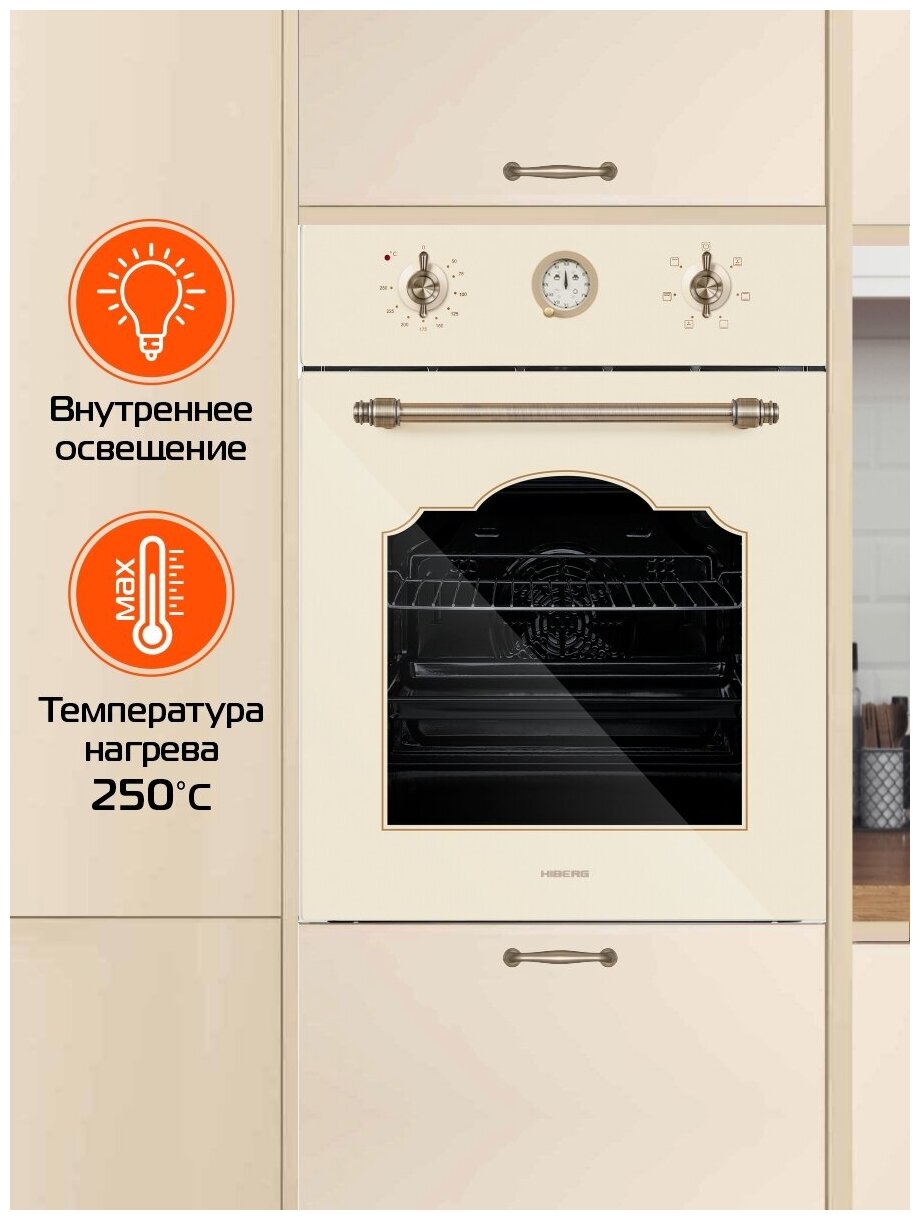 Духовой шкаф HIBERG VM 6382 YR электрический, 67 л, конвекция, гриль, ретро, бежевый