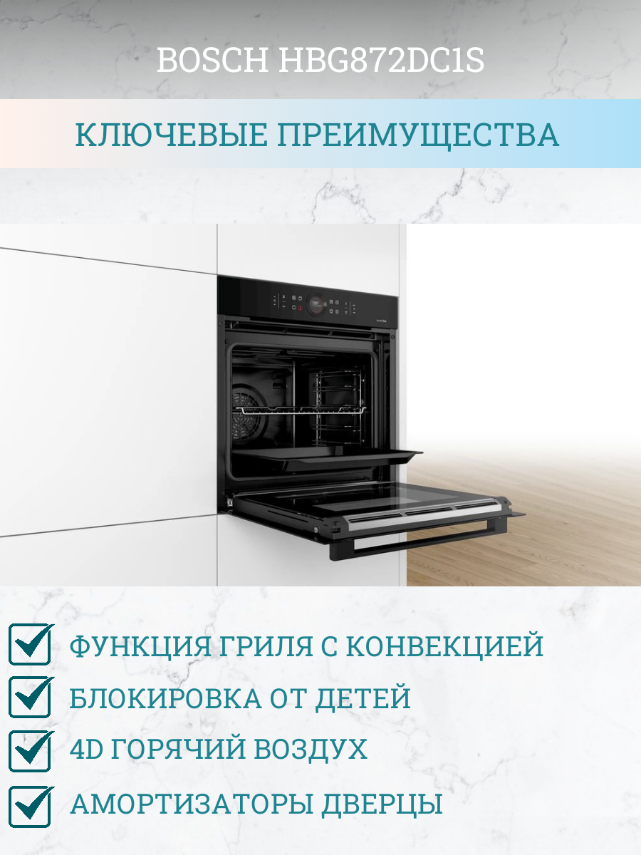 Электрический духовой шкаф Bosch HBG872DC1S информация: