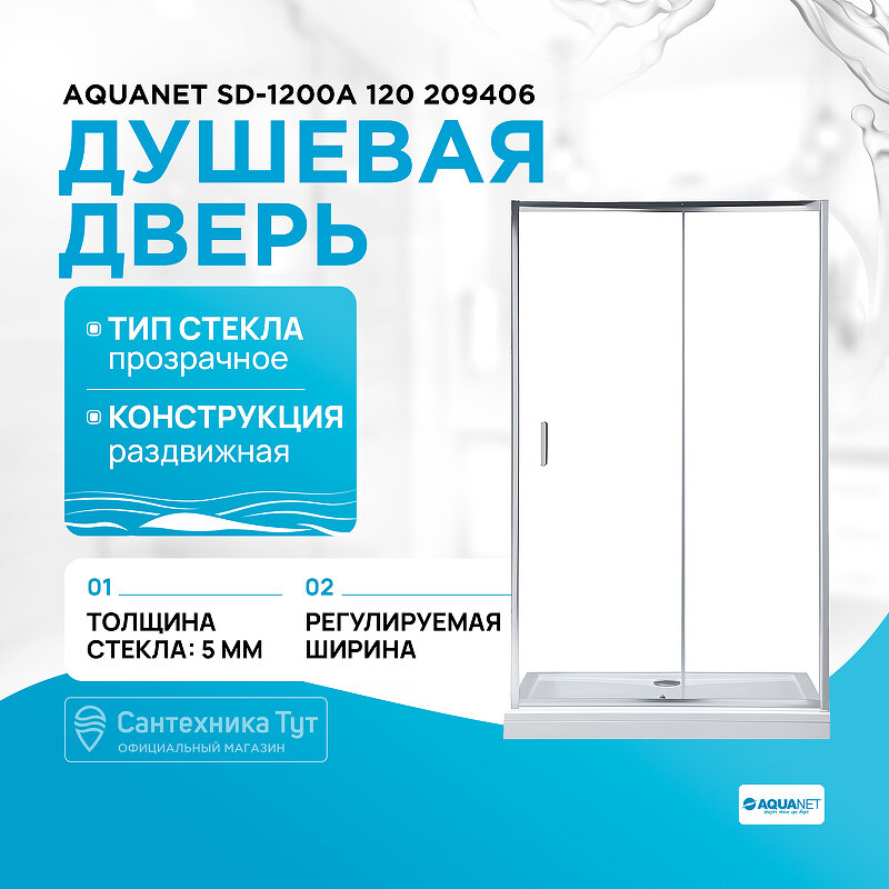 Отзывы на Душевая дверь Aquanet SD-1200A 120 209406 профиль Хром стекло прозрачное