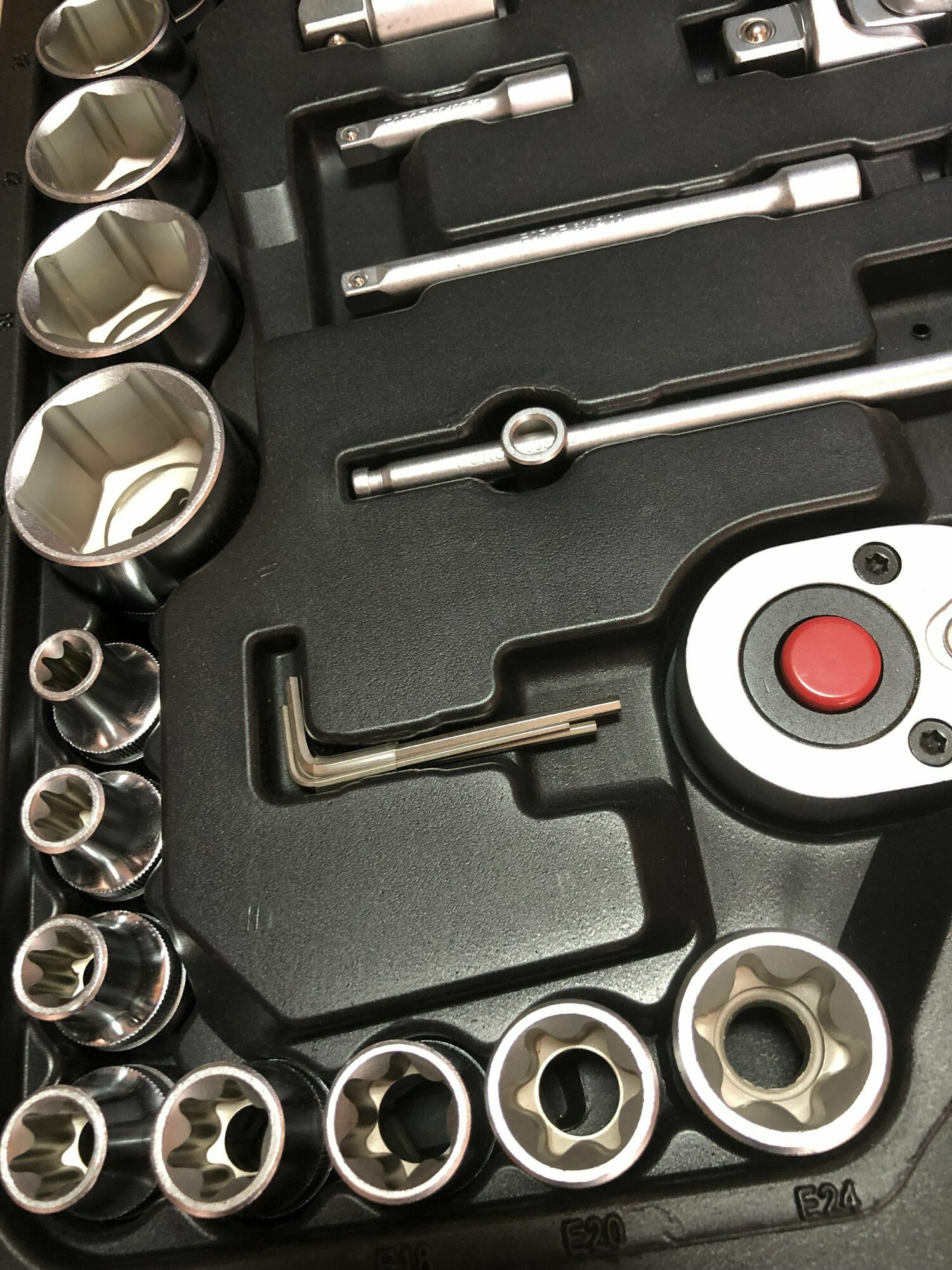 | Головки торцевые подробно | 1/4": 4, 4.5, 5, 5.5, 6, 7, 8, 9, 10, 11, 12, 13, 14 мм; длинные 1/4": 6, 7, 8, 9, 10, 11, 12, 13 мм; Torx 1/4": E4, E5, E6, E7, E8; с битами 1/4": T8, T10, T15, T20, T25, T27, T30, H3, H4, H5, H6, SL4, SL5.5, SL6.5, PZ1, PZ2; 1/2": 10, 11, 12, 13, 14, 15, 16, 17, 18, 19, 20, 21, 22, 24, 27, 30, 32 мм; длинные 1/2": 14, 15, 17, 19, 22 мм; Torx 1/2": E10, E11, E12, E14, E16, E18, E20, E24; свечные 1/2": 16, 20.6 мм |