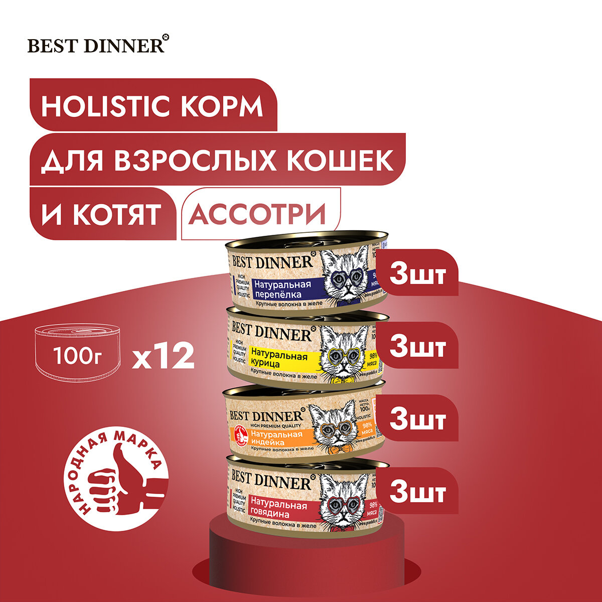 Влажный корм Best Dinner Holistic для котят и кошек любых пород Ассорти (12шт х 100гр) 2 158 ₽