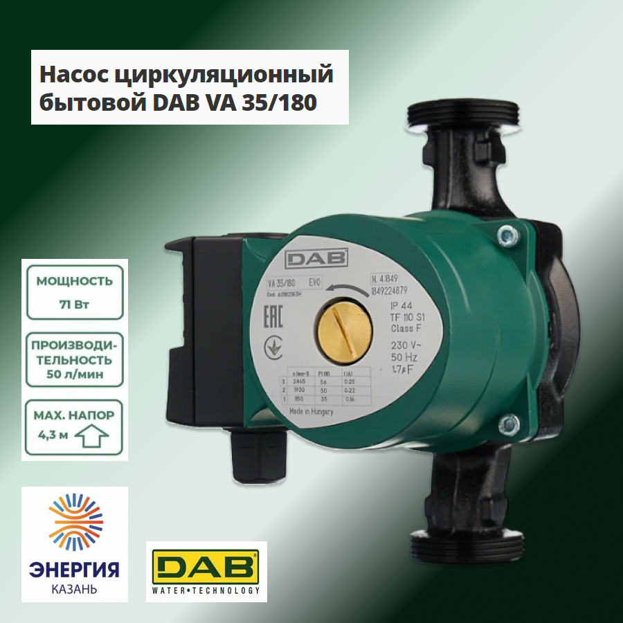 Насос циркуляционный DAB VA 35/180Х (1х220В; 71Вт), L180 информация: