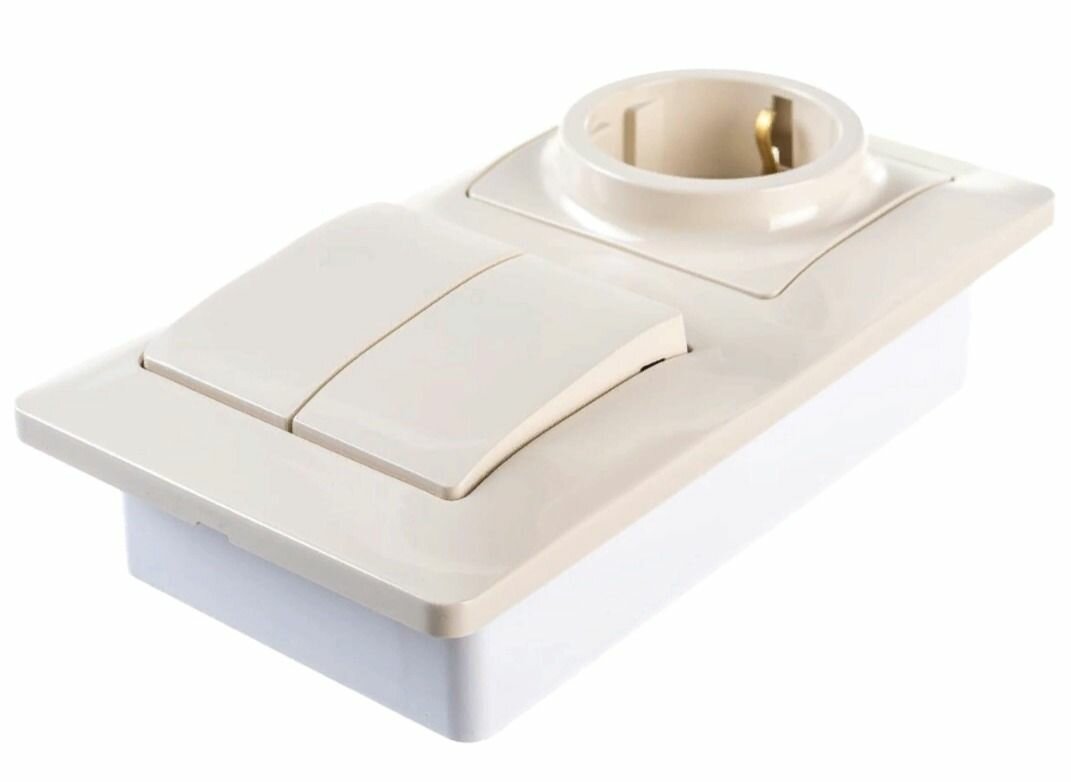 Блок скрытой установки GLOSSA Systeme Electric: розетка с заземлением со шторками + выключатель двухклавишный бежевый