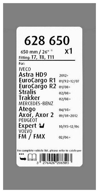 Щес‚Рєр° Сѓс‚Рµрєр»Рѕрѕс‡Рёсѓс‚Рёс‚Рµр»Сџ 650Mm Iveco Stralis (02/08),Mercedes-Benz Atego Valeo арт. 628650 информация: