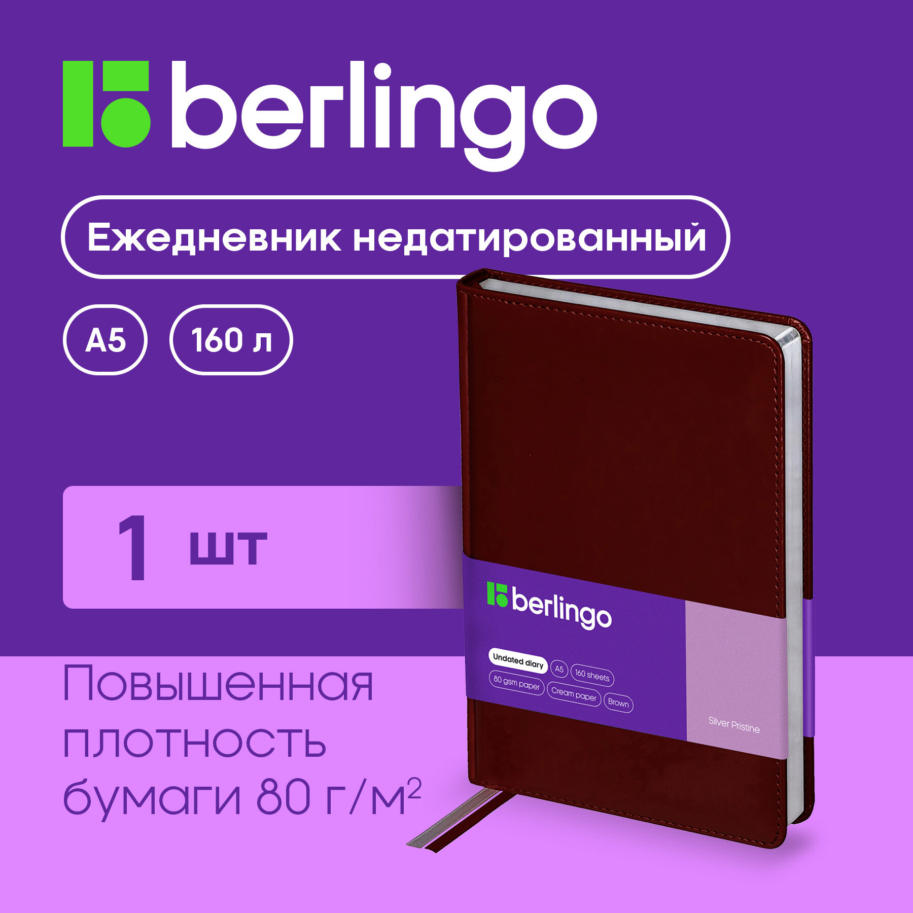 Ежедневник недатированный А5 Berlingo Silver Pristine (160 листов) обложка кожзам, коричневая, цв.срез (UD0_82504)