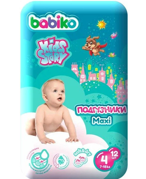 Подгузники Babiko, kids story junior, размер 4, 7-18 кг, 12 шт информация: