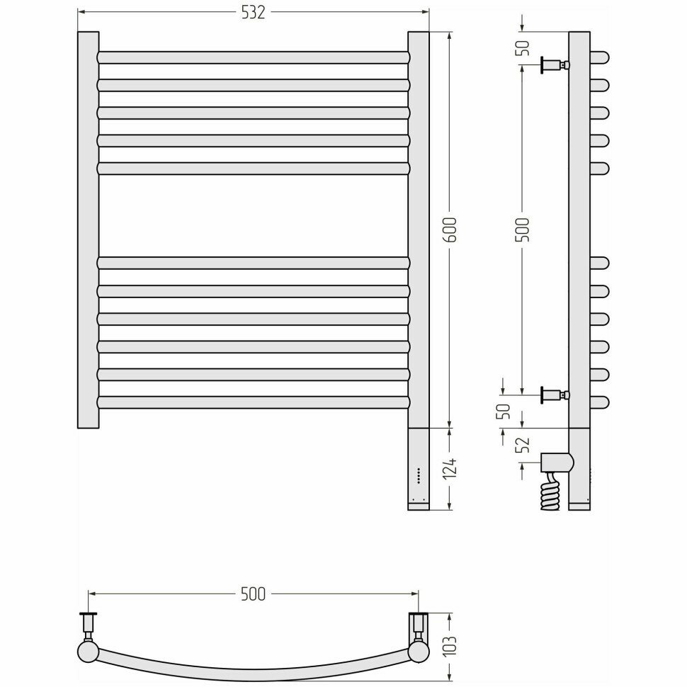 Электрический полотенцесушитель Сунержа Богема 3.0 выгнутая 600x500 МЭМ Пр. арт. 00-5803-6050