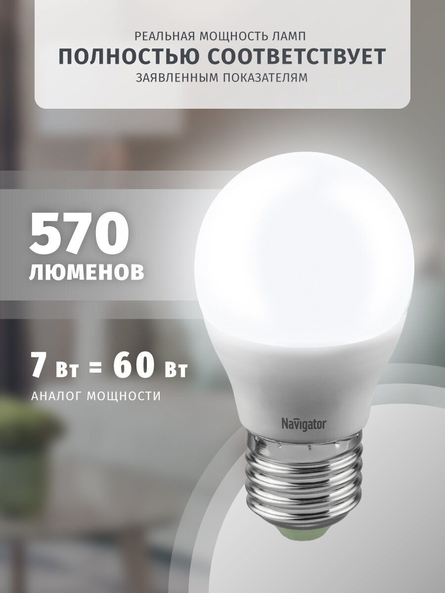Отзывы на Светодиодная лампа Navigator 61 381 диммируемая, 7 Вт, шар, Е27, дневного света 4000К, 1 шт.