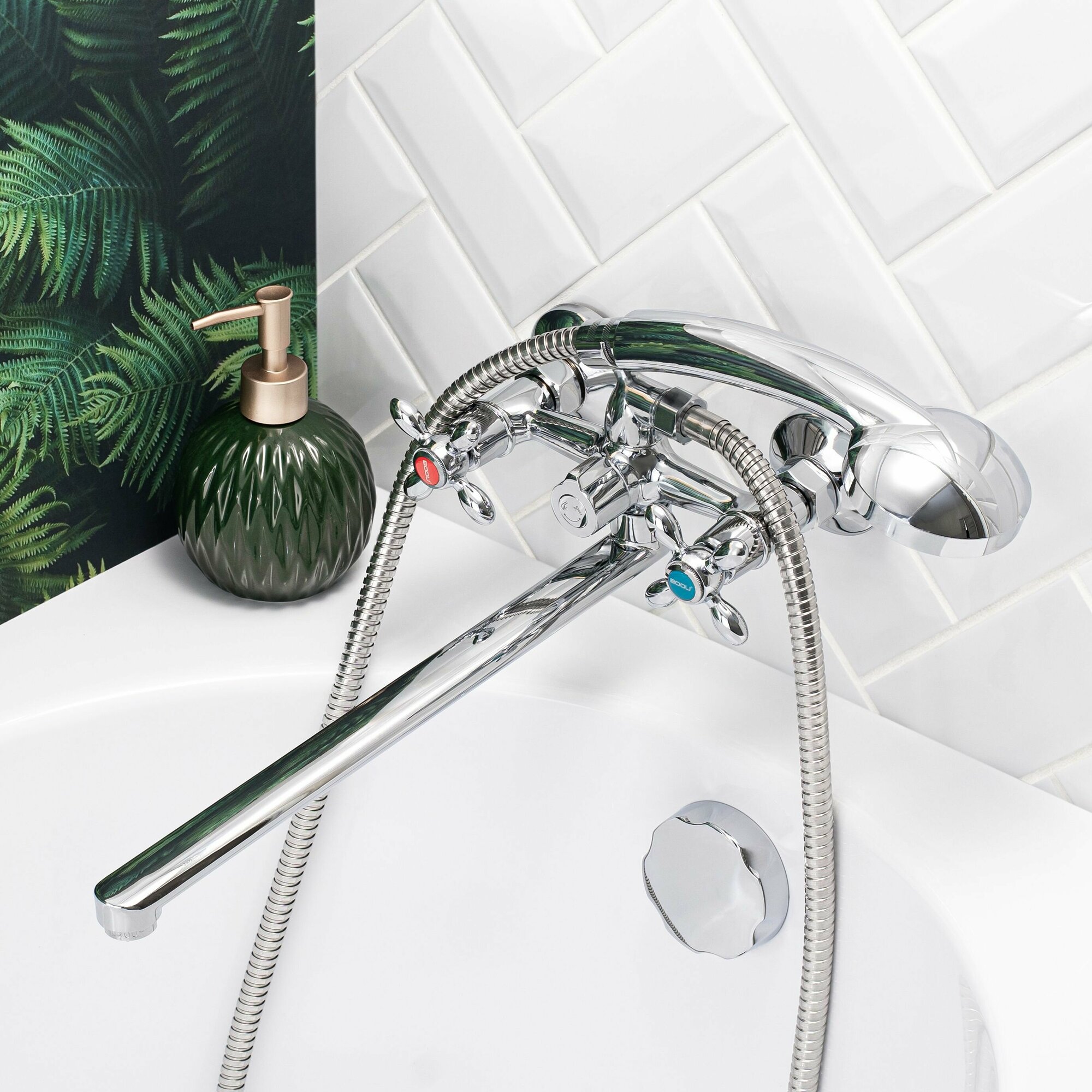 10 цен на Смеситель для ванны, BOOU BA5318-4-C007-B702, латунь, двухвентельный, с лейкой и шлангом, длинный поворотный излив