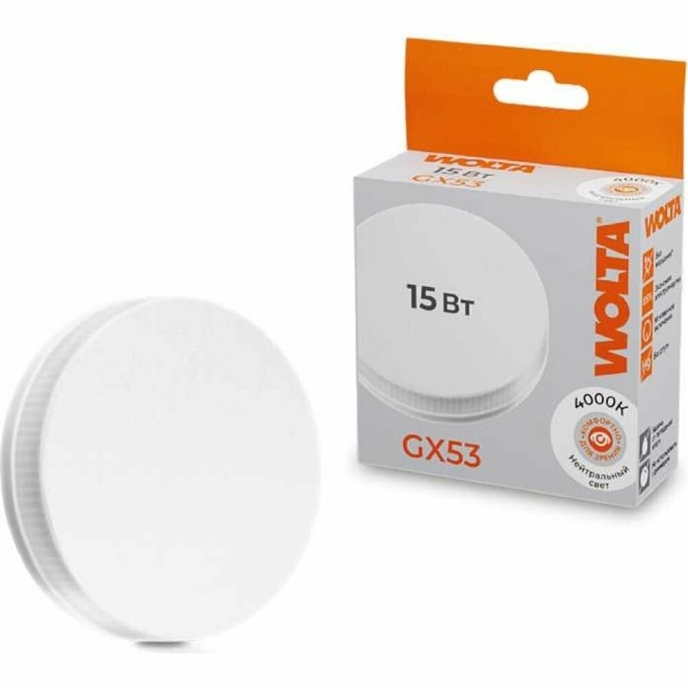 Светодиодная лампа WOLTA 25Y75R15GX53 15Вт 3000K GX53 308 ₽