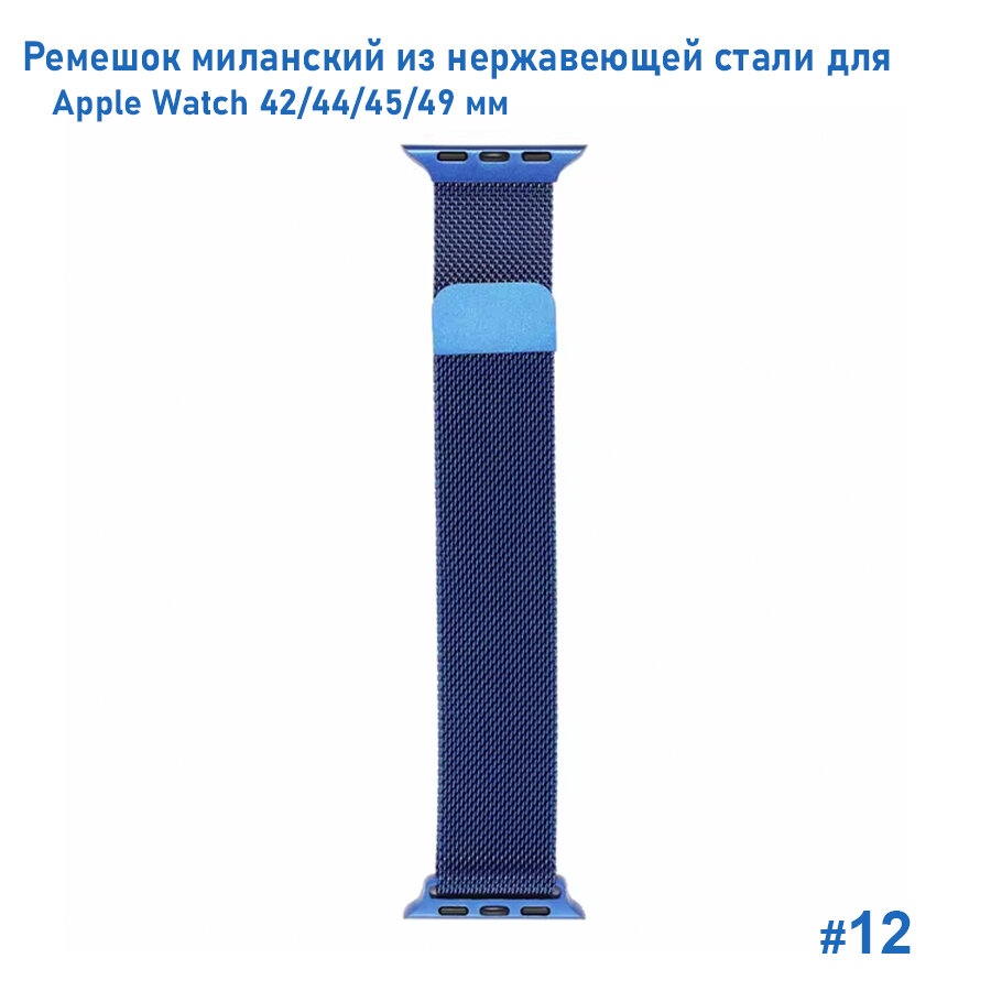Ремешок миланcкий из нержавеющей стали для Apple Watch 42/44/45/49мм (12), синий, на магните
