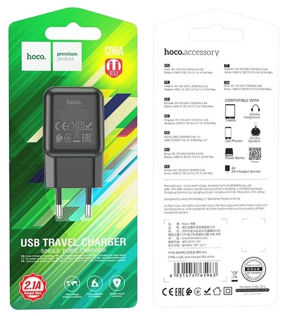 СЗУ 1USB 2.1A Hoco C96A Black информация: