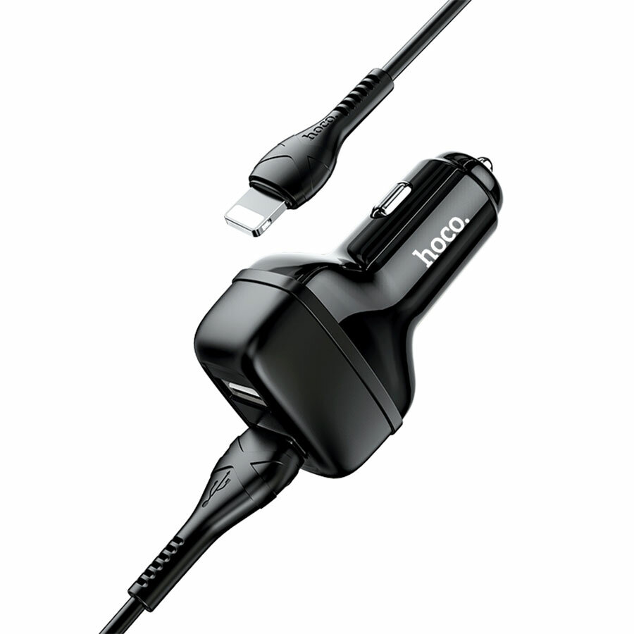 Автомобильное зарядное устройство HOCO Z36 Leader, 2xUSB с Кабелем USB - Lightning, 2.4A, черный информация: