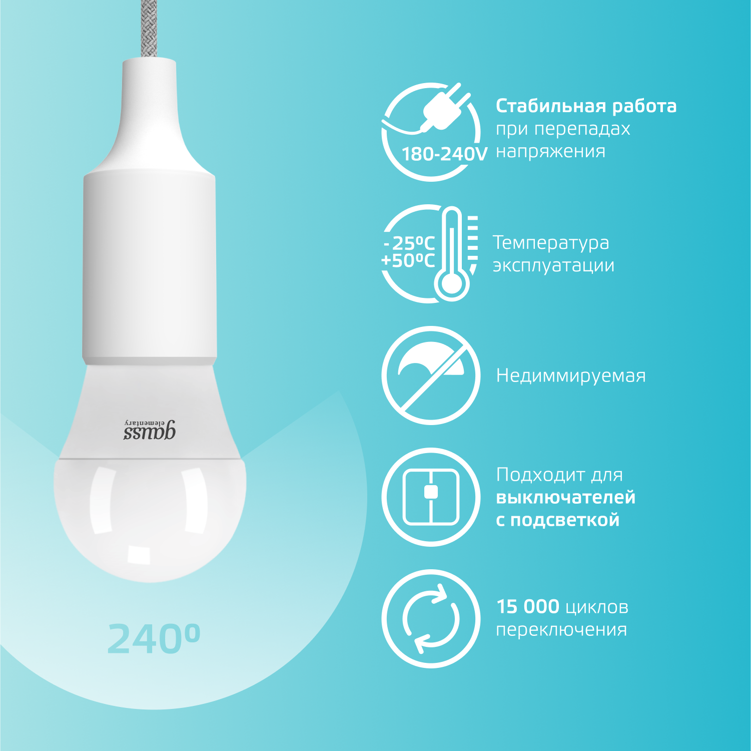 Отзывы на Лампочка светодиодная E27 Шар 6W нейтр-белый свет 4100K упаковка 10 шт. Gauss Elementary