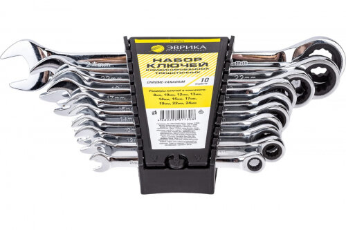 Набор комбинированных ключей Эврика трещоточные, 10 предметов информация: