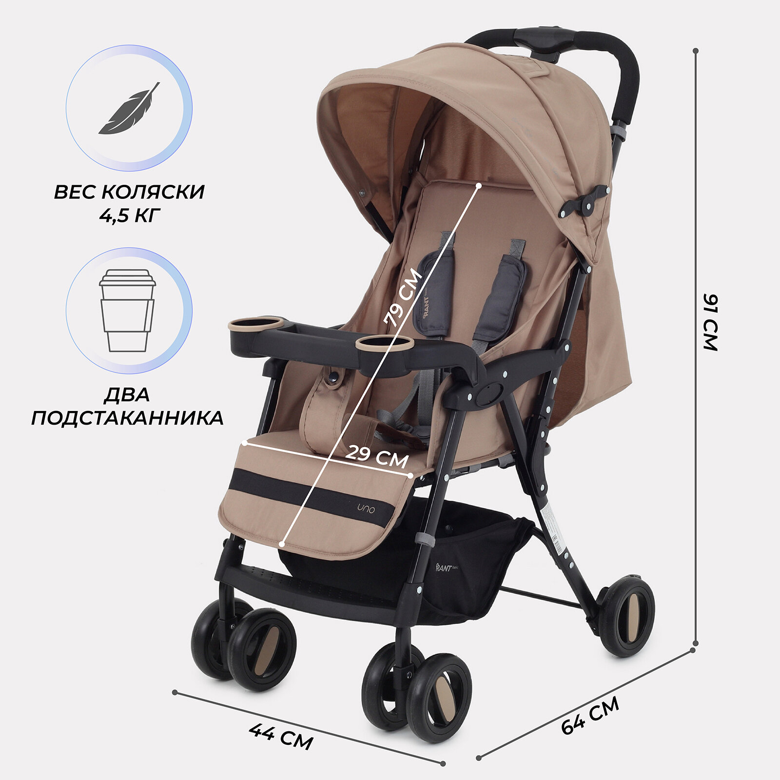 RANT Коляска прогулочная детская RANT basic «UNO», складывается в трость, цвет Desert Beige 9 878 ₽