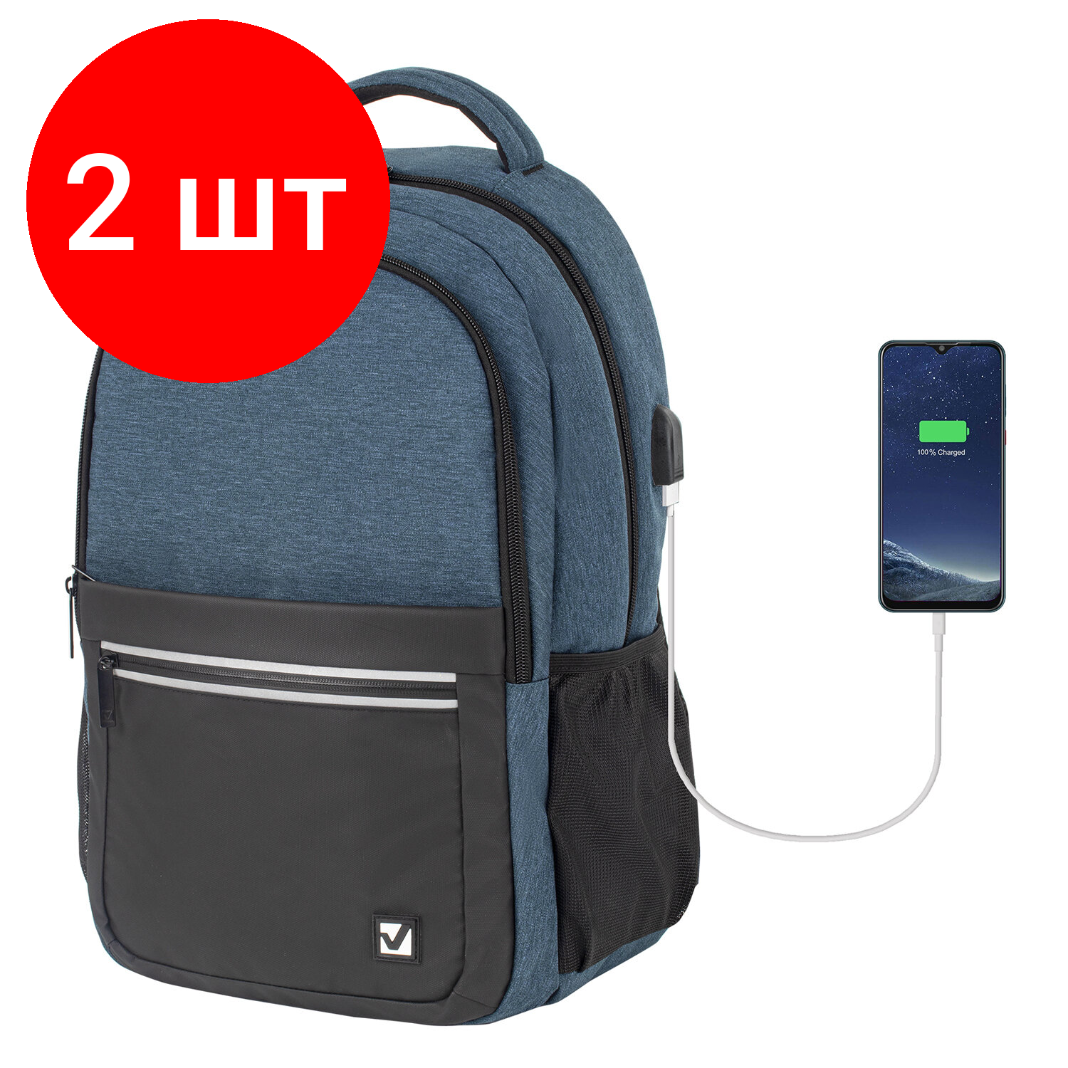 Комплект 2 шт, Рюкзак BRAUBERG URBAN универсальный, с отделением для ноутбука, USB-порт, Denver, синий, 46х30х16 см, 229893 информация: