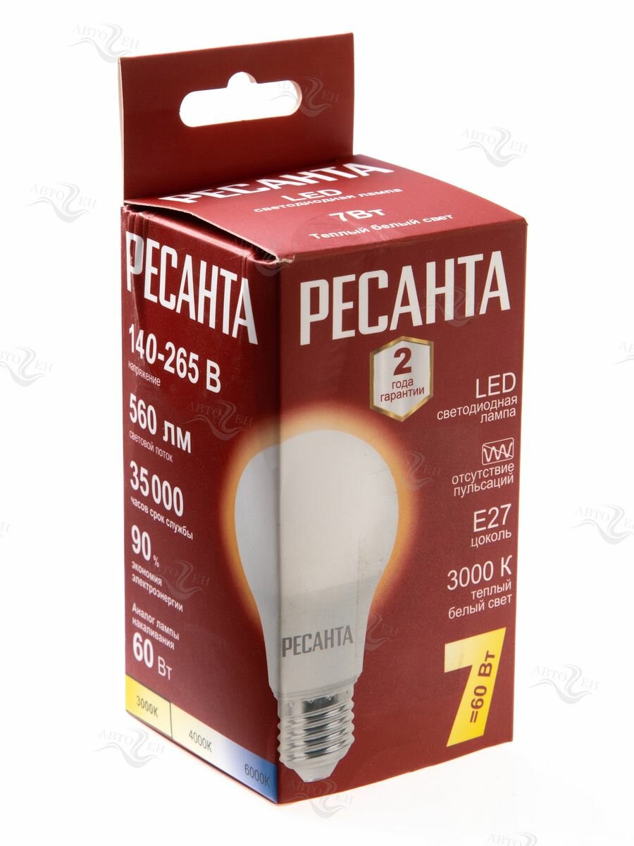 Лампа светодиодная Ресанта LL-R-A60-7W-230-4K-E27, груша, 10 шт