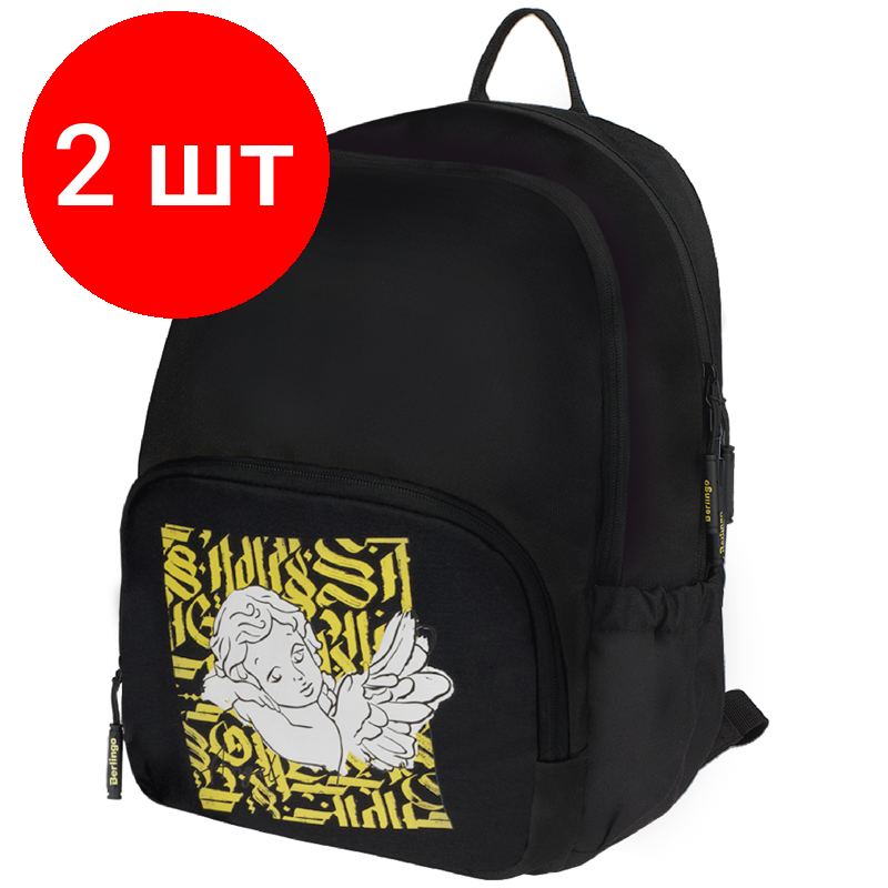 Комплект 2 шт, Рюкзак Berlingo Light "Angel black" 39.5*28*16см, 2 отделения, 3 кармана, уплотненная спинка информация: