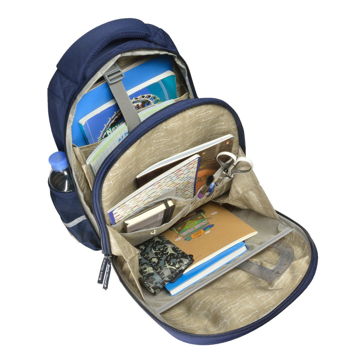 | Дополнительная информация | Ткань водонепроницаемая, морозостойкая, с повышенной износостойкостью, грязеотталкивающая. Двунаправленные-реверсивные надежные 8-мм молнии с 5-см пуллером на замках, что позволяет легко открывать и закрывать рюкзак. Эргономичная спинка, комфортная при длительном использовании, вентилируемая, с анатомическими подушечками. Регулируемые лямки анатомической формы и ручка с усиленным креплением готовы к любым нагрузкам. Износостойкая фирменная подкладка BRUNO VISCONTI, тщательно подобранная и сочетающаяся с дизайном и цветом рюкзака. Рюкзак имеет два основных отделения: первое отделение содержит органайзер с молнией и карман-сеточку, второе отделение состоит из трех частей с двумя разделителями с фиксирующим ремнем и дополнено карманом на молнии для карточки. Рюкзак снабжён четырьмя светоотражающими элементами. Усиленное дно рюкзака оснащено резиновыми ножками, защищающими от загрязнения и влаги. |