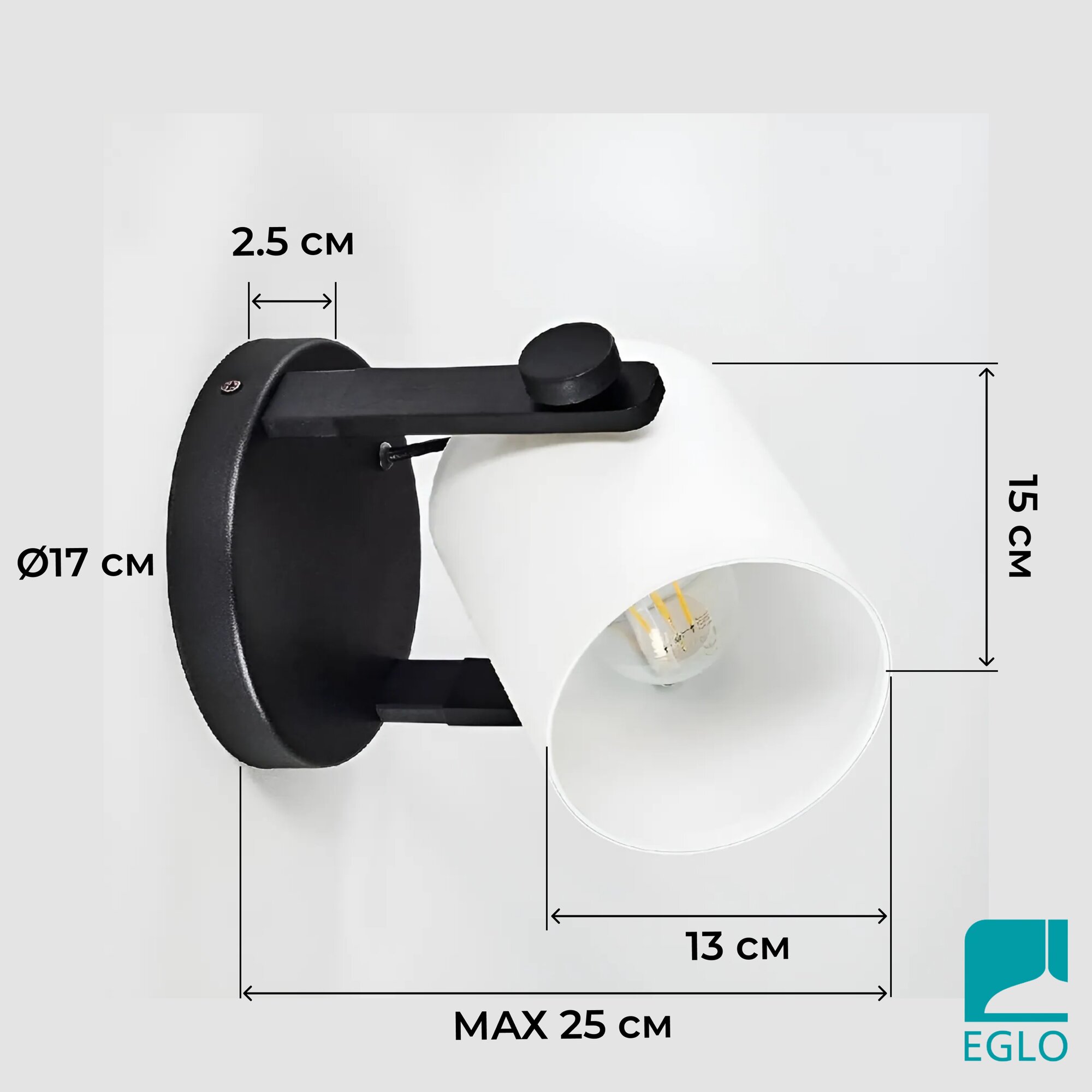 43427 Бра HORNWOOD 1, 1х28W (E27), L195, A255, сталь, черный/текстиль, белый 2 393 ₽