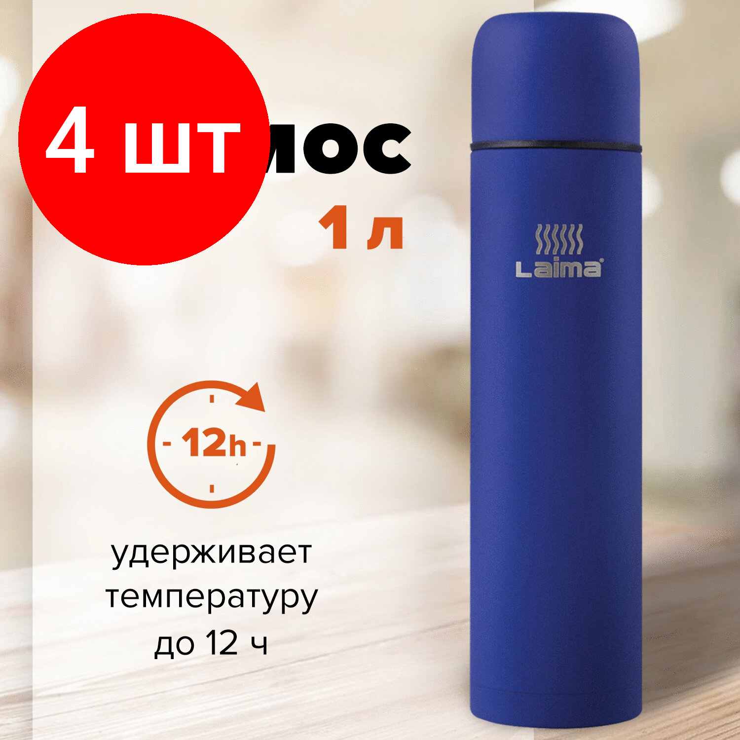 Комплект 4 шт, Термос LAIMA классический с узким горлом, 1 л, нержавеющая сталь, синий, 605124 информация: