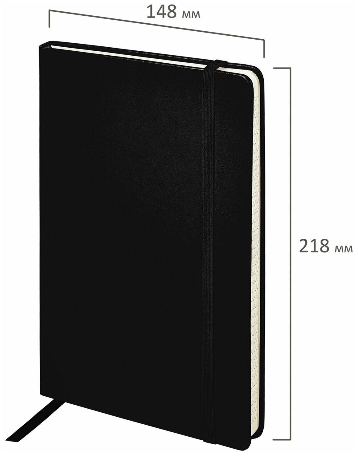 Бизнес-блокнот, записная книжка, тетрадь А5 (148x218 мм), Brauberg Metropolis Special, под кожу, 80 л., резинка,клетка, черный, 111577 информация: