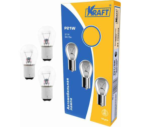 Лампа накаливания KRAFT P21W 12v21w BA15s упаковка 10 шт. KT 700042