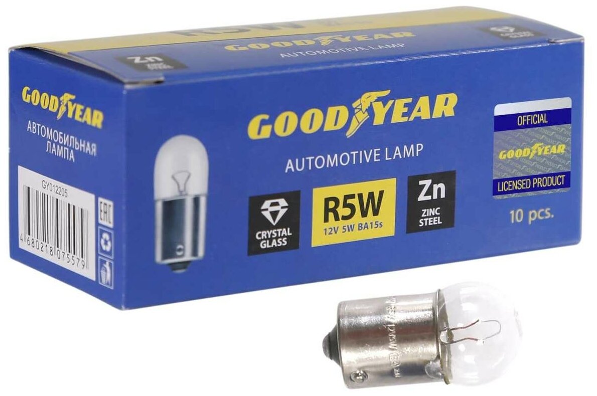 GOODYEAR GY012205 Лампа накаливания сигнальная R5W BA15s 12V 5W Картон 10 шт (цена за 10 шт.) GY012205