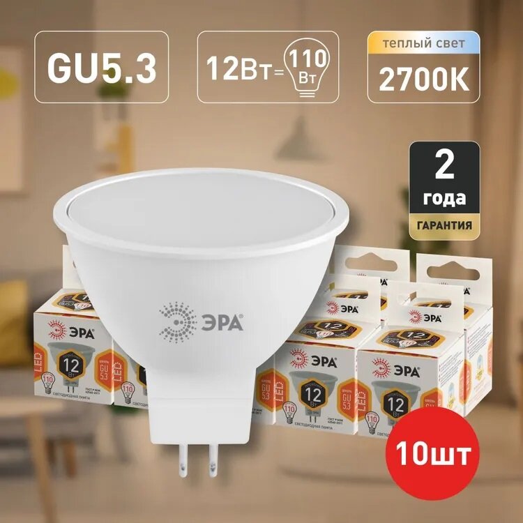 Лампочка светодиодная ЭРА (набор 10 штук) STD LED MR16-12W-840-GU5.3 GU 5.3 12 ВТ софит нейтральный белый свет