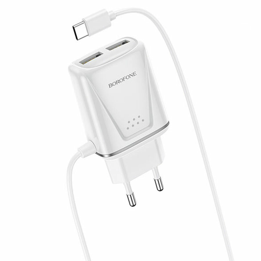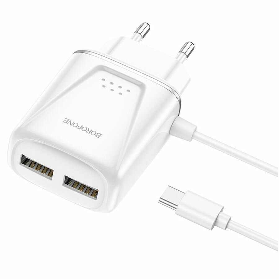 10 цен на Сетевое зарядное устройство BOROFONE BA50A Beneficence 2xUSB с Кабелем Type-C, 2.1A, белый