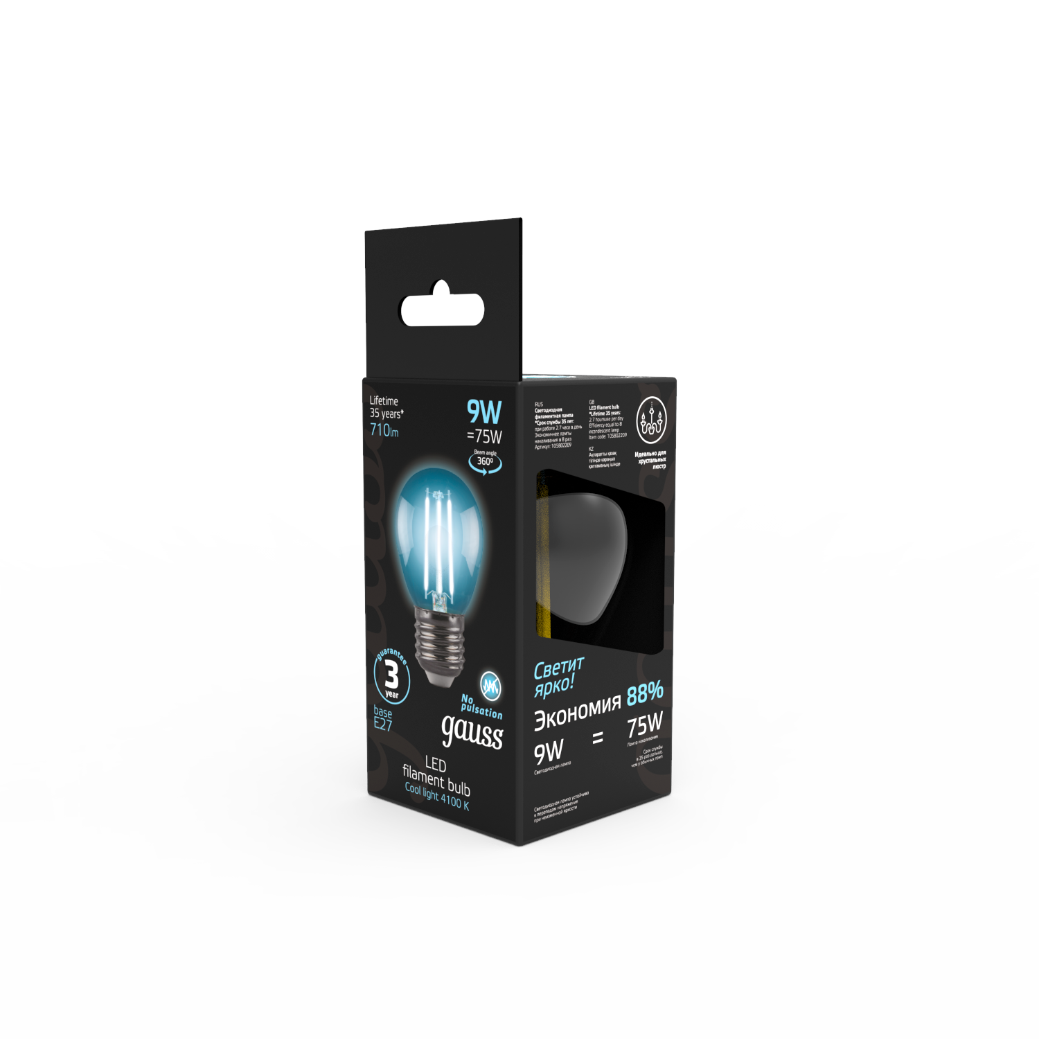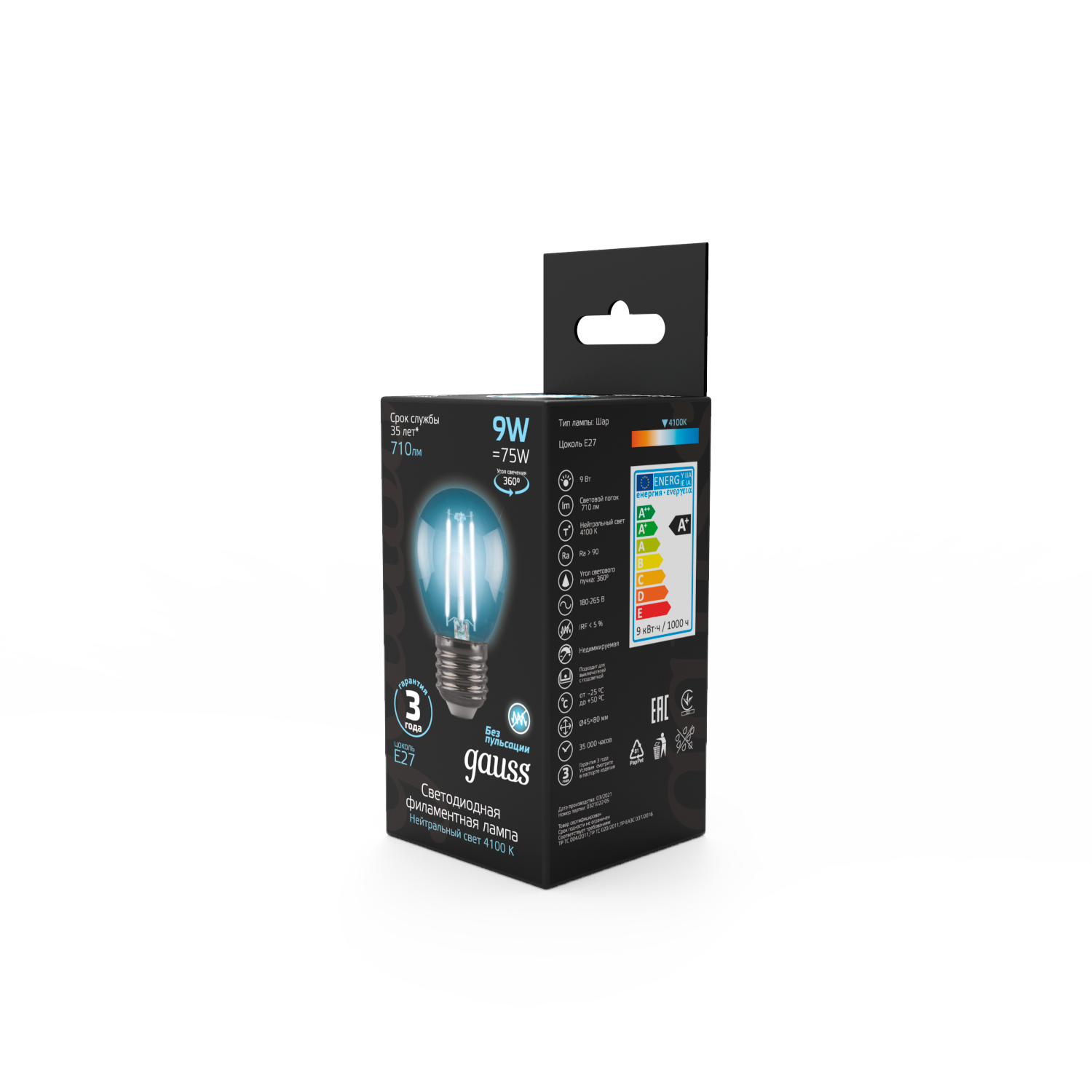 Отзывы на Лампочка светодиодная Е27 Шар 9W нейтр белый свет 4100K упаковка 10 шт. Gauss Filament