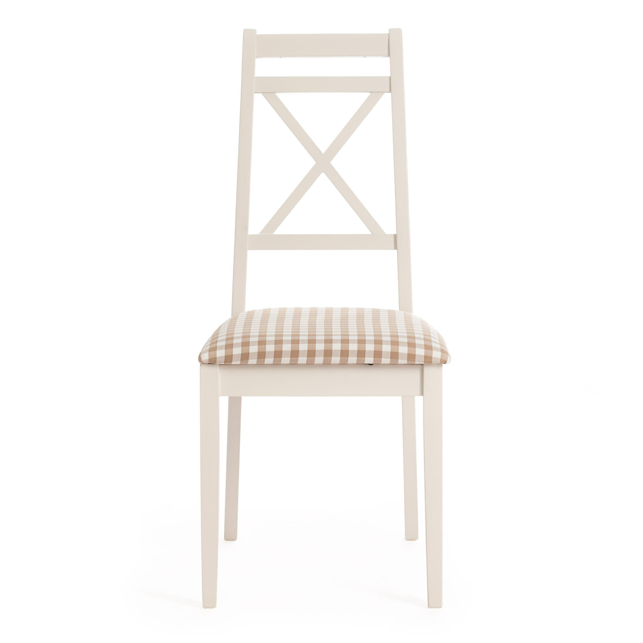 10 цен на Стул обеденный Picasso ткань бежевая клетка, ножки массив дерева белый, T-12349