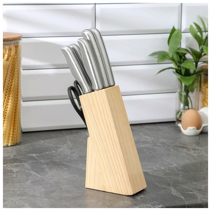 Набор ножей кухонных на подставке «Блеск стали», 6 предметов: 5 ножей лезвие 9,5 см, 13 см, 13,5 см, 20,5 см, 20,5 см, ножницы информация: