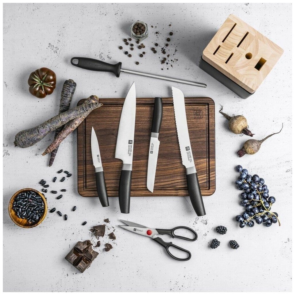 Отзывы на Набор кухонных ножей в подставке Now S, 7 предметов, сталь + каучуковое дерево, Zwilling J.A. Henckels, Германия, 54532-007