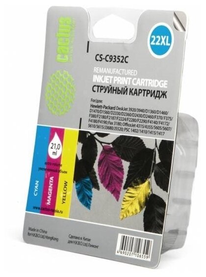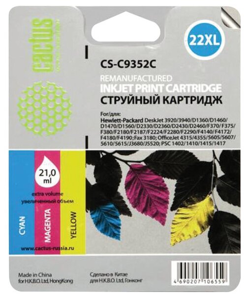 Картридж струйный Cactus CS-C9352C №22XL многоцветный (18мл) для HP DJ 3920/3940/D1360/D1460/D1470/D1560/D2330/D2360