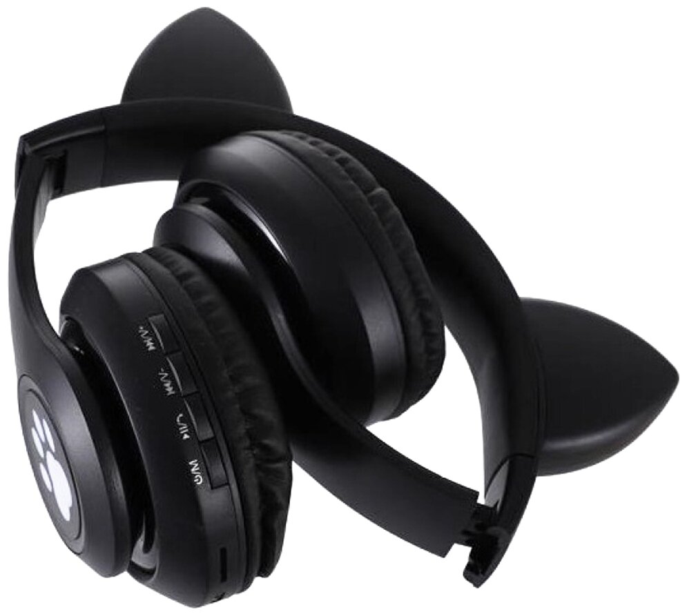 Детские беспроводные наушники Cat Ear P33M / Полноразмерные Bluetooth наушники со светящимися ушами, со встроенным микрофоном и радио (черный) 1 209 ₽