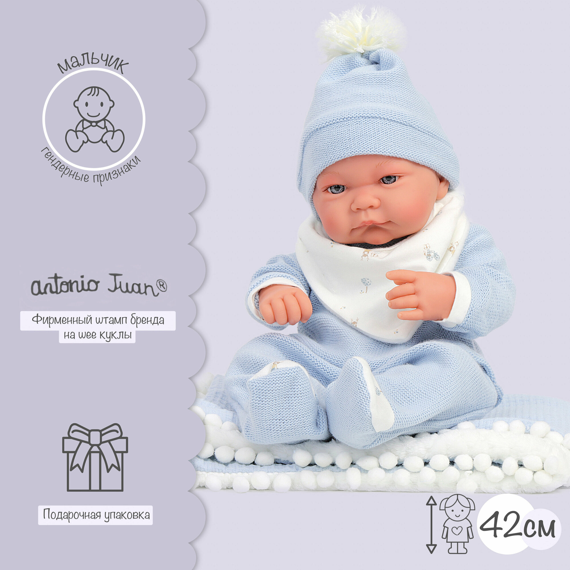 Кукла пупс Antonio Juan Мио в голубом 42 см виниловая информация: