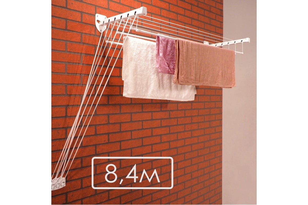 Сушилка для белья Бриз 3м / настенная раздвижная сушилка / складная вешалка для сушки, цвет белый