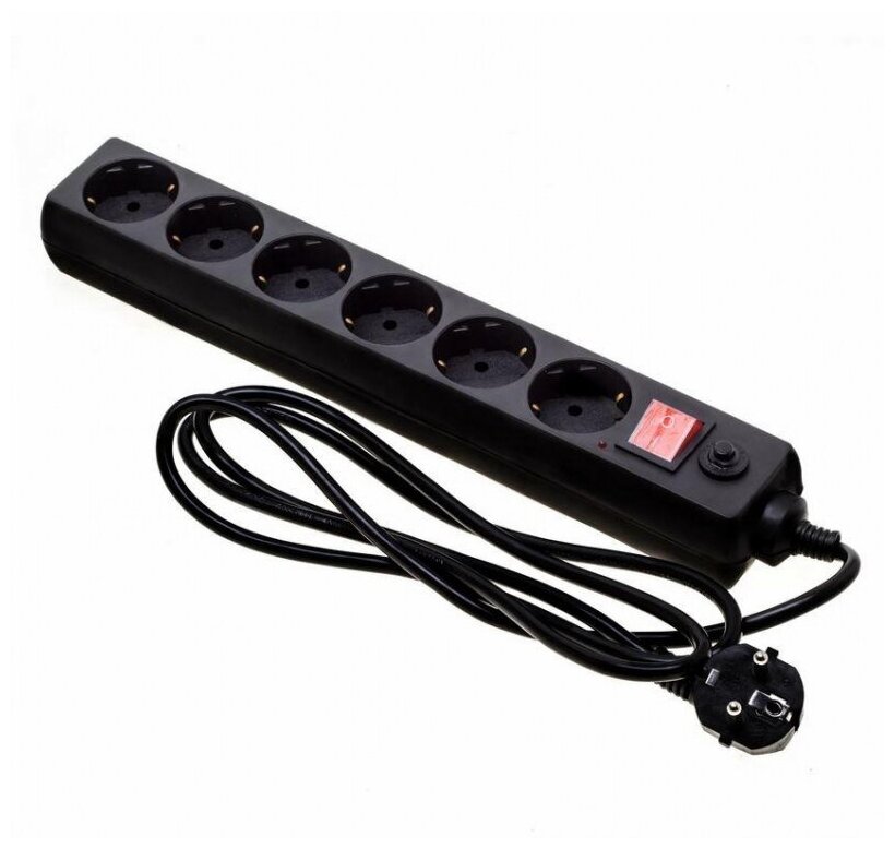 Сетевой фильтр BURO 600SH-1.8-B черный, 6гн, 1,8м, выключатель